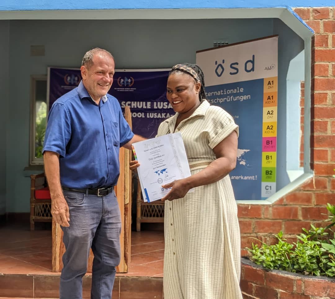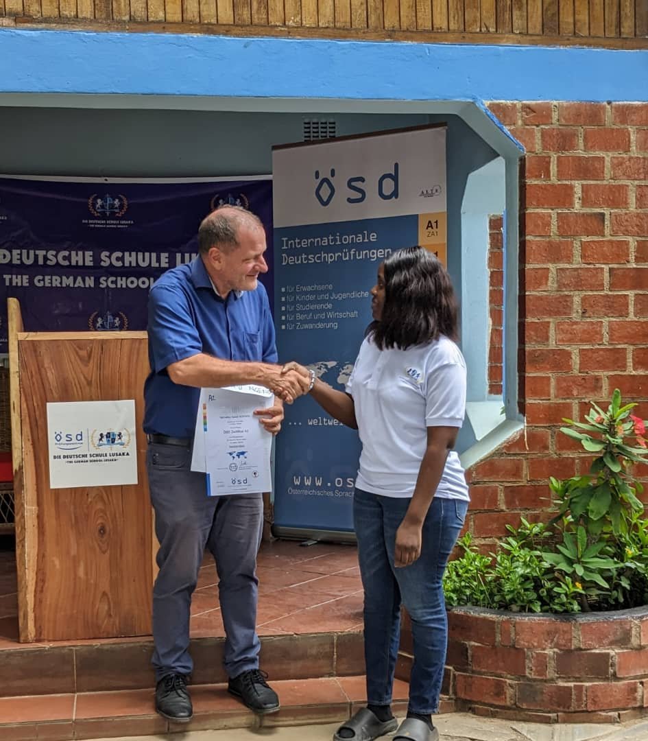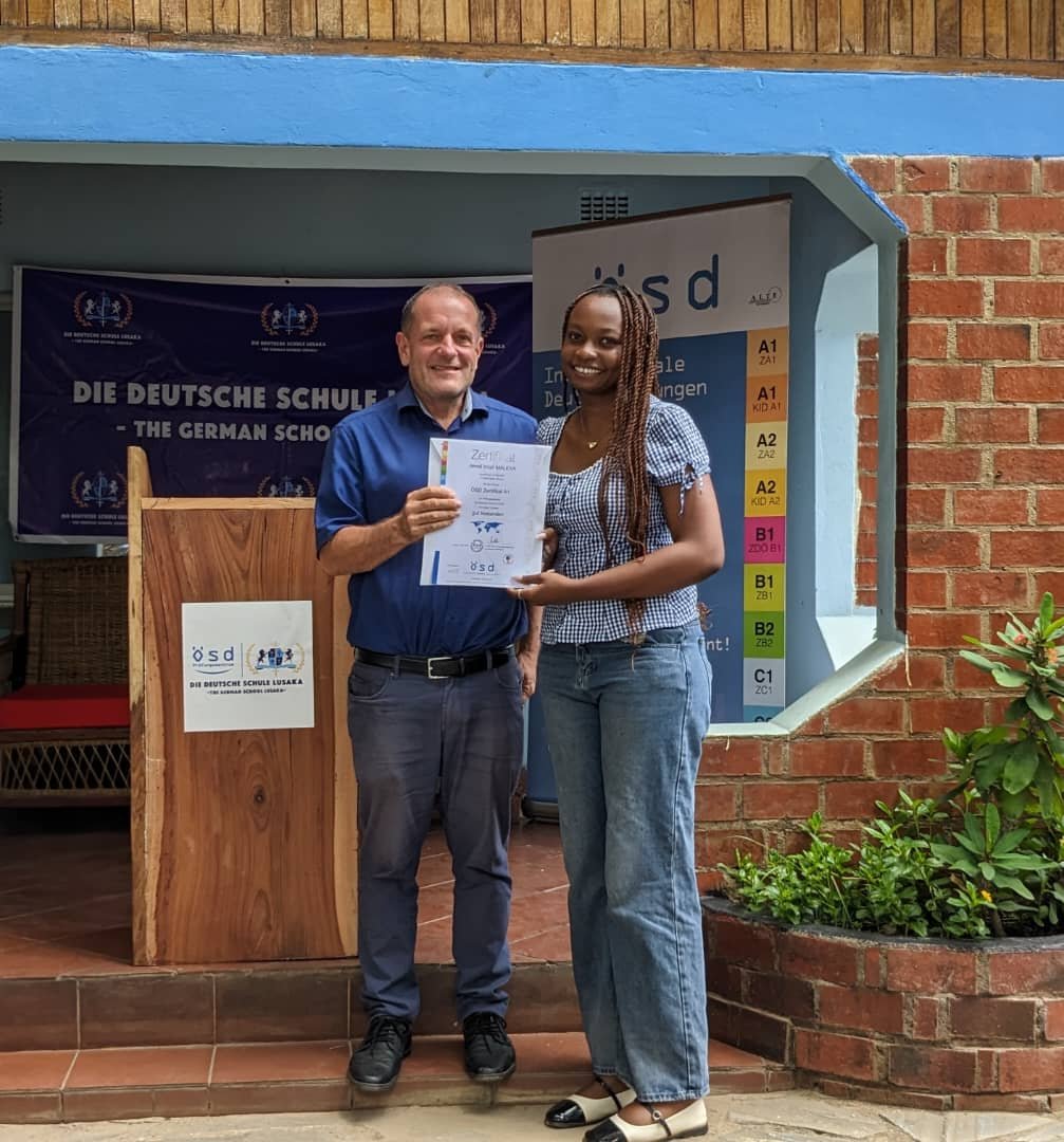 I am thankful to DDS Lusaka for their support and kindness, the school equipped me for my A1 Geothe...