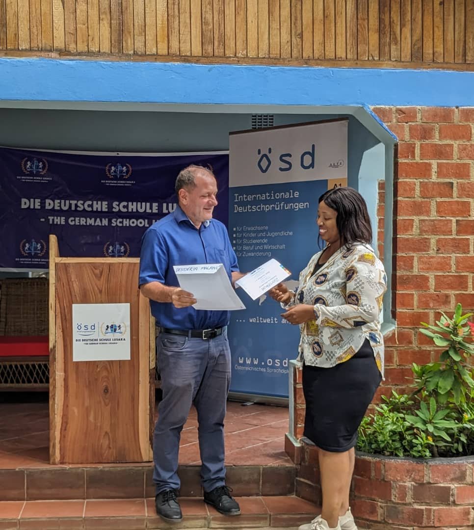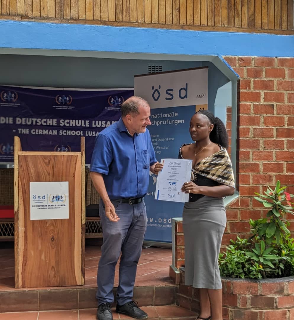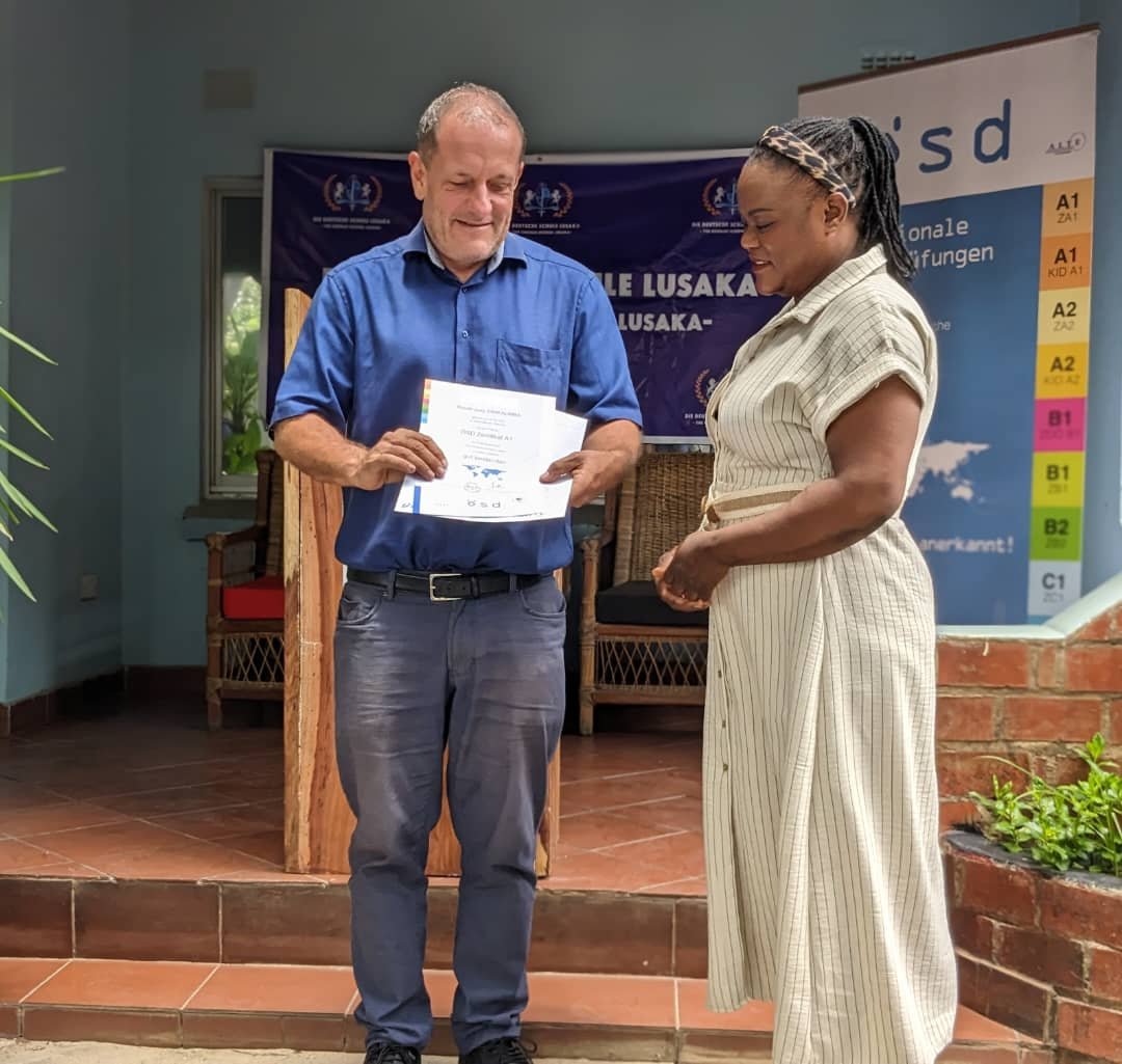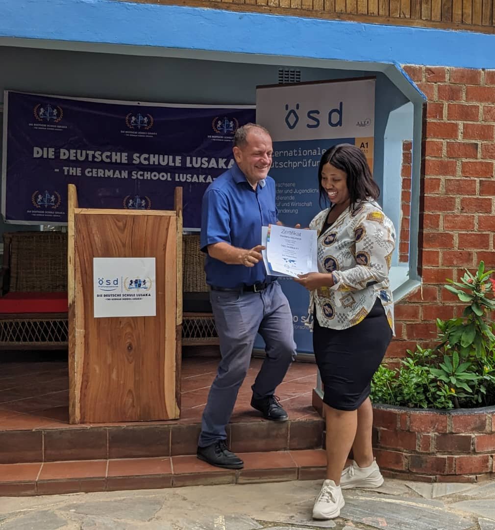 I am thankful to DDS Lusaka for their support and kindness, the school equipped me for my A1 Geothe...